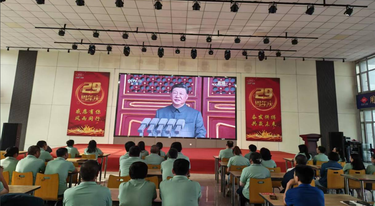 員工們?nèi)褙炞?,認(rèn)真聆聽中共中央總書記、國家主席、中央軍委主席習(xí)近平的重要講話。“正義必勝、和平必勝、人民必勝”的鏗鏘宣言,讓大家感受到磅礴力量,民族自豪感和愛國之情油然而生。
